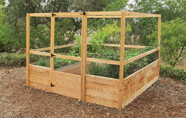 4"x4" Reach-Through Trellis Netting The trellis is backed with sturdy reach-through 4"x4" netting, so you can harvest all vegetables from the inside of the fenced garden, without having to walk behind the structure. The trellis is ideal for growing peas, green beans, tomatoes and cucumbers.