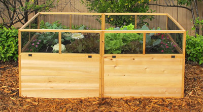 Raised Garden Bed with Hinged Fold-Down Fencing